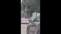 소방당국은 차량 옆 하수구에서 시작된 불이 전기차에 옮겨붙은 것으로 보고 화재 원인을 조사하고 있습니다.