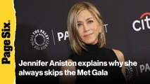 Friends star Jennifer Aniston has opened up on her go-to fashion choices and why she shuns the annual extravaganza.
