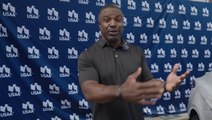 Philadelphia Eagles lineman Lane Johnson sports an 'underdog' mask following victory