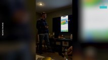The clip shows Andreas being launched sky-high before crashing down on the edge of the trampoline and falling to the ground.