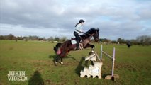 The clip shows 14-year-old Juliette from Vallabrix, France riding her horse, Epona, as they attempt an obstacle.