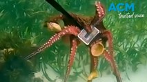 Watch the incredible moment a snorkeler dives down to film an octopus on the seafloor, only for the creature to check out the camera in return.
