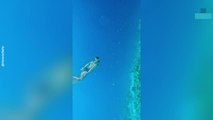 The footage, captured by Eric Desmet from, Cannes, France, shows the diver approaching carefully before placing the camera nearby.