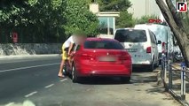 Karaman’da elektrikli bisikletle çay servisi yapan genç garson, panelvan aracın altında kalmaktan saniyelerle böyle kurtuldu.