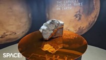 Space.com editor-in-chief Tariq Malik gives you a peek at the biggest piece of Mars discovered on Earth. Currently on display at Sotheby's in New York City. Credit: Space.com | edited by Steve Spaleta