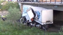 Lastiği patlayan TIR köprüden uçtu