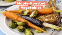 A caramelized maple syrup and mustard glaze gives these roasted veggies the perfect balance of sweet and tangy flavor. In this video, Matthew Francis makes a vegetarian dinner worth bragging about with this easy recipe for maple-mustard roasted vegetables.