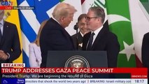 US President Donald Trump, Turkish President Recep Tayyip Erdoğan and the Emir of Qatar Tamim bin Hamad Al Thani sign the Gaza peace deal at a summit attended by world leaders in Sharm el-Sheikh, Egypt. Report by Brooksl. Like us on Facebook at http://www.facebook.com/itn and follow us on Twitter at http://twitter.com/itn