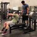 Atrás de novo desafio, atleta faz supino levantando dois companheiros de academia