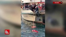 İstanbul Boğazı'nda boğulma tehlikesi geçiren kadını denize atlayarak kurtardı; o anlar kamerada