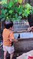 Tan-aw sa salida si Isaiah while gibantayan sa iyang lola Janet