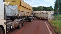 Carreta tomba em acidente na rodovia BR-163, em Cascavel