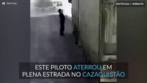 Helicóptero militar pede indicações no meio da estrada