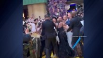 당시 남성은 그란데에게 달려들어 목에 팔을 두르며 펄쩍펄쩍 뛰었고, 그란데가 놀라며 휘청거리자, 옆에 있던 동료 배우 에리보와 경호원들이 달려와 남성을 붙잡았습니다.