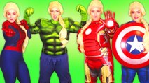 Frozen Elsa Turns into SUPERHEROES! w/ Spiderman Joker Maleficent Bad Baby Poison Ivy & Hu