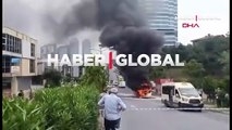 İstanbul Bağcılar'da yolcu minibüsü alev alev yandı!