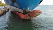 선체 앞부분이 심하게 찌그러진 대형 여객선, 당시 조타실에 있던 일등항해사는 휴대전화로 '딴짓'을 하고 있었던 것으로 조사됐습니다.