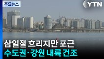 오늘 전국 하늘 흐린 가운데 수도권과 강원내륙에는 약한 빗방울 정도가 스칠 수 있겠습니다.