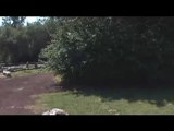Watch the adorable moment two dachshund puppies take on two peacocks in a playful garden showdown.