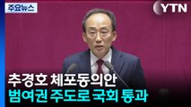 오늘의 정치 온조기연, 윤기찬 여야 법률위 부위원장과 함께 집중 분석해 보겠습니다. 추경호 의원의 체포동의안이 국민의힘 의원 불참 속에찬성 172표, 반대 4표 등으로가결됐습니다. 첫 번째 키워드에서 확인하시죠.트리거, 장동혁 국민의힘 대표는오늘 추경호 의원 체포동의안 가결은이재명 정권을 단축시키는 '트리거'가 될 거라고 말했는데요. 들어보시죠. 불체포특권을 포기한 추경호 의원의 신상 발언, 정성호 장관의 목소리에 이어서 들어보시죠. 국민의힘은 전원 본회의 불참했습니다. 당사자인 추경호 의원만 홀로 참석했는데.사실 범여권 의석이 과반이 훌쩍 넘기 때문에 오늘 체포동의안 가결은 사실 예상된 수순이었습니다. 중요한 것은 다음 주에 있을 영장심사 결과인데요. 어떻게 예상하세요?