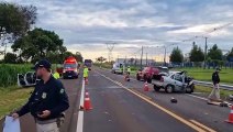 Tragédia na BR-277: condutor de micro-ônibus morre ao ser ejetado em colisão frontal com automóvel em Santa Tereza do Oeste; há mais 4 vítimas