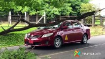 Árbol cae encima de vehículo en Ciudad Colonial ante paso de Franklin