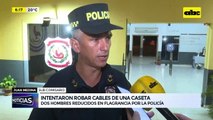 Dos hombres identificados como Alfredo Ojeda de 31 años y Gabriel Espínola de 38 años, ambos con antecedentes, fueron detenidos pues son sindicados como autores de robo de cables y reflector de una Quinta ubicada en la zona de Parque del Sol, Capiatá. Vecinos alertaron a la policía de la presencia de personas en la vivienda y al ver la presencia de los uniformados, los presuntos autores treparon una muralla, huyeron, pero fueron reducidos a dos cuadras del lugar.