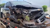 Onix destruído após acidente e 74 kg de maconha apreendidos são levados à Central de Flagrantes em Cascavel