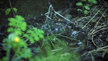 A short cinematic travel video capturing a quiet walk through a rainy mountain village surrounded by waterfalls and green fields.