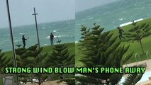 This woman was cleaning up dried leaves and carrying them outside when a strong gust of wind suddenly blew, sending all the leaves right back inside in an instant.