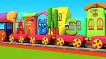 Trem Alfabético 3D para Crianças. Aprenda o alfabeto polonês com letras coloridas e um trem de conto de fadas que recolhe letras individuais ao longo do caminho. As letras do alfabeto viajam em vagões ao lado de árvores.