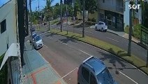 Motociclista fica ferido após colisão com carro no Bairro Coqueiral, em Cascavel; câmera flagra momento do acidente