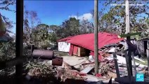 Aerial images show a trail of destruction left behind by Storm Goretti across Cornwall, south-west England, including fallen trees, destroyed solar panels, and a toppled wind turbine. The storm has brought winds of up to 100mph to the area. Report by Keechl. Like us on Facebook at http://www.facebook.com/itn and follow us on Twitter at http://twitter.com/itn