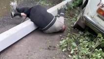 Man holds on to a collapsed pole following alleged drunk driving incident