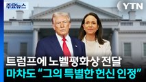 마두로 정권에 맞서 민주화 운동을 이끌어온 베네수엘라 야권 지도자 마차도가 트럼프 미국 대통령과 만나 자신의 노벨 평화상을 전달했다고 밝혔습니다.