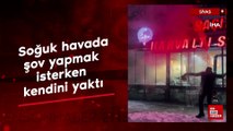 Sivas'ta soğuk havada şov yapmak isterken kendini yaktı