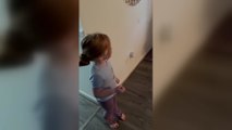 Delany pretended there was a big parcel waiting outside the door, while their dad was secretly hiding inside it.