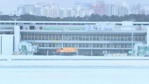 여러 대의 제설차가 동시에 눈더미를 밀어내며 꽉 막힌 통행로를 겨우 뚫고 있죠.