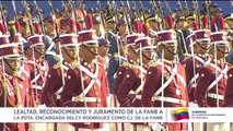 Tras asumir como presidenta encargada de Venezuela, Delcy Rodríguez recibió la insignia como comandante en jefe de las fuerzas armadas de la nación suramericana. teleSUR