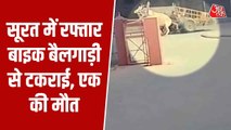 सूरत में तेज रफ्तार बाइक की बैल गाड़ी से टक्कर में 1 युवक की मौत, CCTV में कैद हादसा
