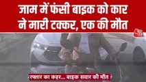गुरुग्राम: रेड लाइट पर जाम के बीच तेज रफ्तार इनोवा ने बाइक को मारी टक्कर, एक की मौत; डैशकेैम में कैद हादसा