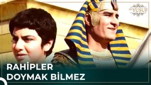 Züleyha, Yusuf’a Mısır gelenek ve göreneklerini öğreterek saray adabına uygun yetişmesini istemektedir. Bu amaçla saray mensuplarının ve çalışanlarının yemek taksimi işini Yusuf’a verir. Yusuf tapınak kahinlerine fazla yemek verilmesine karşı çıkınca kahinleri karşısına alır. Baş kahin Yusuf’u bizim tanrılarımıza tapmıyor diye Potifar’a şikayet eder fakat karşılık bulamaz. Sonunda O’nu sağ bırakmayacağını söyler.