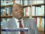 Conférence de presse de Nouréini TIDJANI-SERPOS candidat au poste de Directeur Général de l'UNESCOConsulat général du bénin, le 17/07/2009(Image de Télésud).