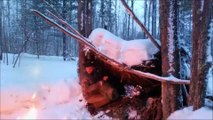 As the temperature drops and the blizzard intensifies, building a fire and staying dry becomes a life-saving priority. Experience the raw sounds of the forest and the reality of winter survival camping in extreme weather. Watch as I manage smoke in the stone hut and find warmth while the snow piles up outside.