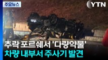 네, 차량 내부와 추락 현장 주변에서 진정·마취용 약물과 일회용 주사기가 무더기로 발견된 건데요.
