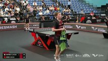 Nouvelle victoire express pour le numéro 1 français qui a fait respecter son rang face à son jeune compatriote (11-8, 12-10, 11-6). Flavien Coton n'a pas démérité et a tenté sa chance en tentant d'agresser son compatriote. Il a mené 7-5 dans le premier set et même 9-5 dans le deuxième, mais n'a pas réussi à conclure quand Félix Lebrun a augmenté son niveau en fin de set. Le Tricolore retrouvera Lin Shidong, numéro 2 mondial, en quarts de finale samedi.