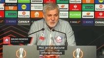 Bruno Genesio a pu savourer sa qualification en huitièmes de finale de la Ligue Europa, après la victoire 2-0 sur la pelouse de l'Étoile Rouge de Belgrade ce jeudi, effaçant la défaite de l'aller à Lille (0-1). Le coach des Dogues assure qu'il prend ce succès avec recul et humilité et qu'il n'a pas de préférence pour le tirage au sort de vendredi, qui l'opposera à Aston Villa ou... Lyon.