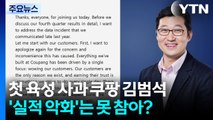김 의장은 오늘(27일) 실적 콘퍼런스콜에서 "이번 일로 심려와 불편을 끼쳐드린 점에 대해 다시 한번 사과드린다"고 밝혔습니다.