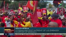 The Iraqi people is demonstrating in front of the Embassy of the United States in Baghdad, capital city of Iraq, to protest the joint U.S.-Israeli attacks on Iran. teleSUR