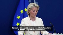Bruxelles, 2 mar. (askanews) - La presidente della Commissione europea, Ursula von der Leyen, chiede una de-escalation per impedire che il conflitto tra Stati Uniti e Israele e l'Iran si "diffonda" in tutto il Medio Oriente. Parlando ai giornalisti a Bruxelles, Von der Leyen ha aggiunto: "Condanno con la massima fermezza questi attacchi sconsiderati e indiscriminati dell'Iran e dei suoi alleati contro territori sovrani in tutta la regione"."Dobbiamo impegnarci a fondo per ridurre l'escalation e fermare l'espansione del conflitto - ha detto - Nelle ultime ore abbiamo assistito a numerosi attacchi, tra cui un attacco con droni contro la base aerea britannica a Cipro. Abbiamo anche assistito a un attacco contro l'impianto petrolifero della Saudi Aramco. E condanno con la massima fermezza questi attacchi sconsiderati e indiscriminati dell'Iran e dei suoi alleati contro territori sovrani in tutta la regione", ha detto.